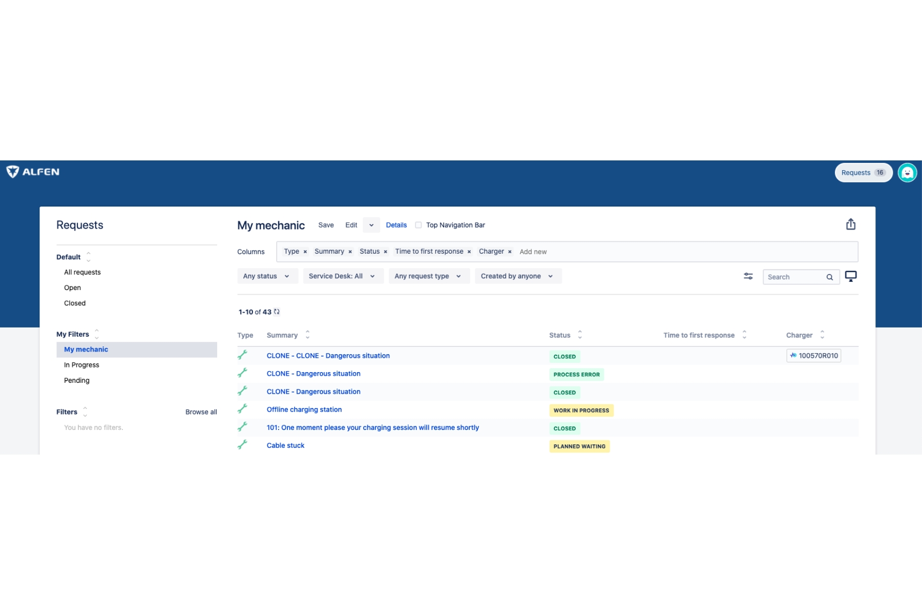 Vroeger stond alle informatie geregistreerd in een apart ERP-systeem en Alfen was geïnteresseerd om Jira voor dit doel te gebruiken en tegelijkertijd een verbeterd ticketverwerkingsproces toe te voegen. Hun Confluence-kennisbank moest ook worden verbeterd om een zelfbedieningsproces mogelijk te maken.