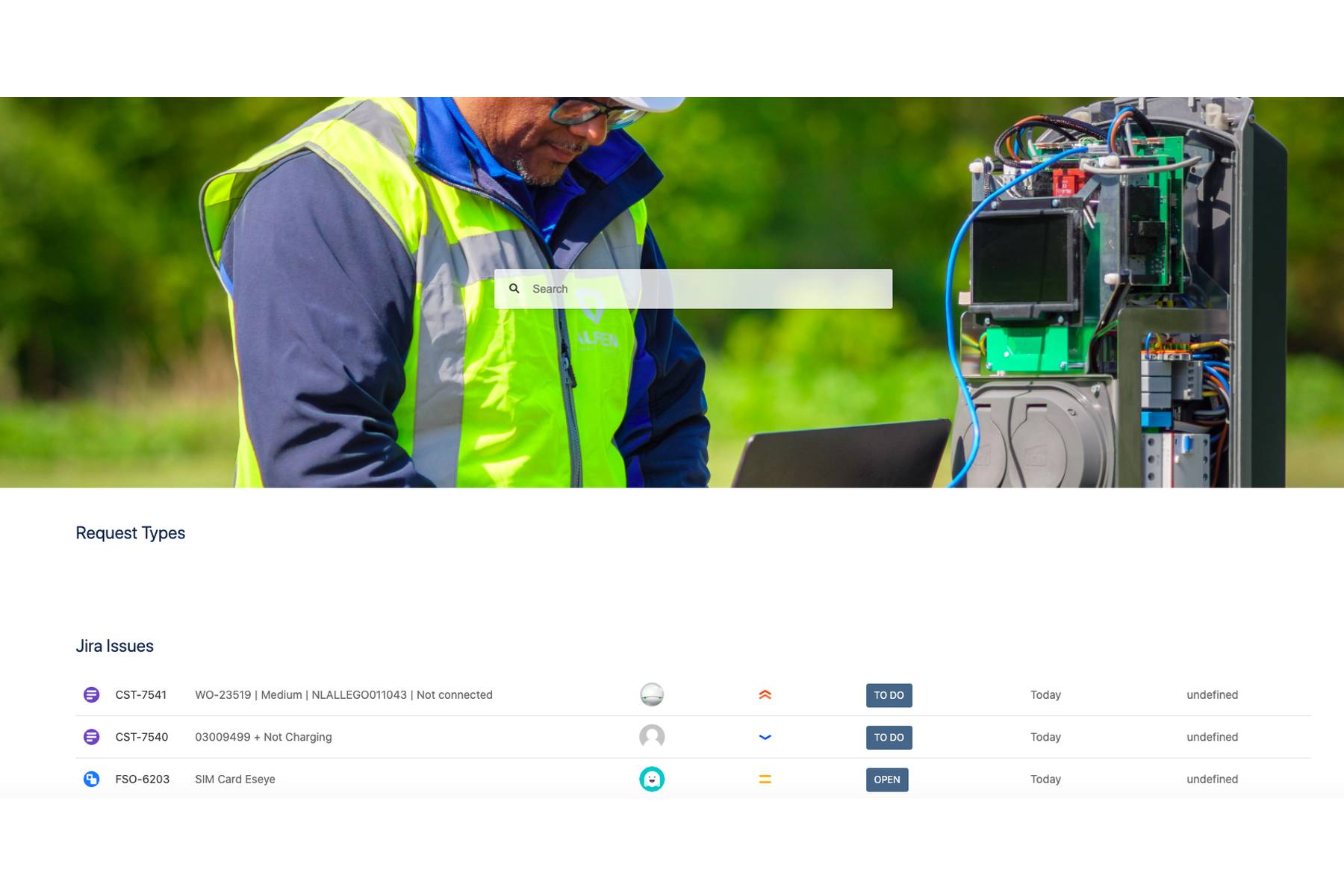 2. De Field Service Provider Portal: een Jira Service Management project waar de serviceorganisaties en hun monteurs (die het onderhoud van laadpalen verzorgen) kunnen registreren, plannen en meldingen kunnen afhandelen omtrent de uit te voeren werkzaamheden aan laadpalen.